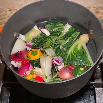 * Freeze scraps divided into 2-3 cup portions when freezing so that a frozen slab can be placed directly into a pot to make broth rather than dividing the scraps later