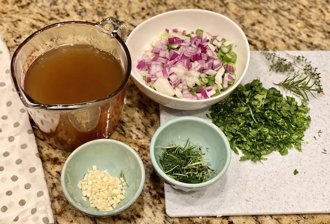 - Add 6c vegetable broth. Turn heat up to high and bring to a boil.