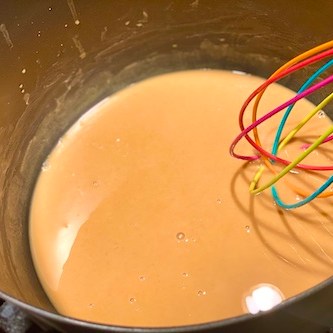 Back to the roux: use a long heat-resistant whisk; the heat really builds up over time. I started off with a small whisk and graduated up as the roux heated up.