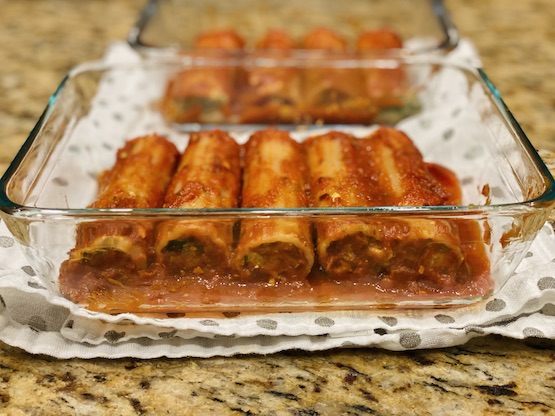 - Fill the manicotti shells with filling – I was easily able to spoon the filling into the shells using a teaspoon and each shell took about a minute to fill so no need to get fancy with piping the filling. Do not force the filling into the shells or overfill.